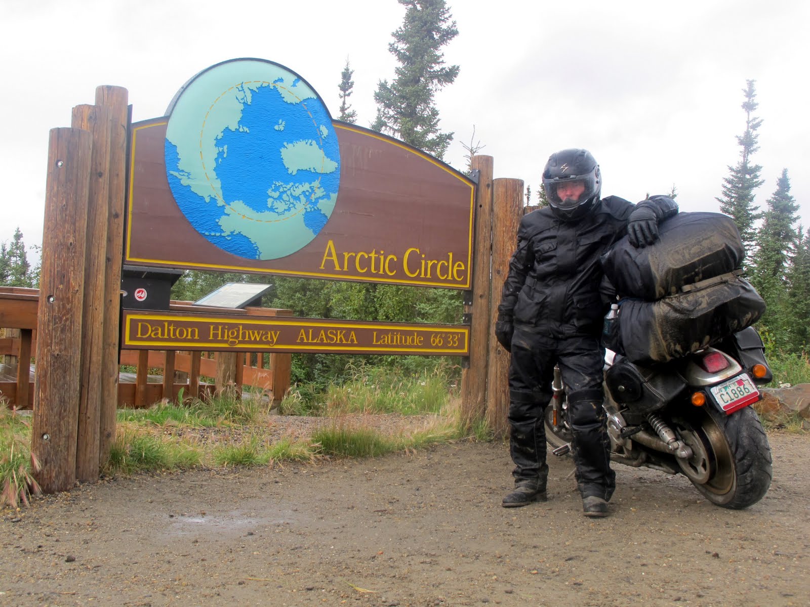 I'm 60 miles into the Arctic Circle & the ride was bad because of the rain creating treacherous muddy conditions.
